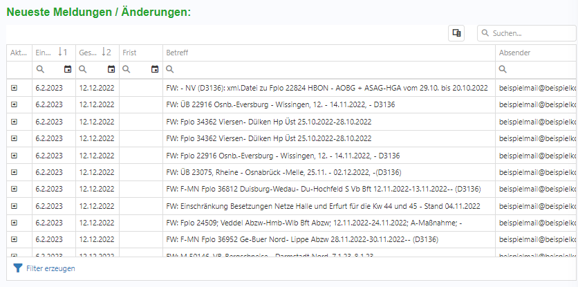 Abbildung 3.1-4: Neueste Meldungen/Änderungen