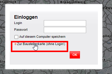 Dafür müssen Sie sich zunächst in das strecken.info Portal einwählen. Eine direkte Weiterleitung finden Sie hier:
