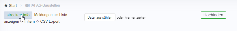 Nachdem Sie Ihre gewünschten Daten aus dem strecken.info Portal exportiert haben, können Sie diese als csv-Datei wieder im BBM hochladen (vgl. Abbildung 5.6‑2).