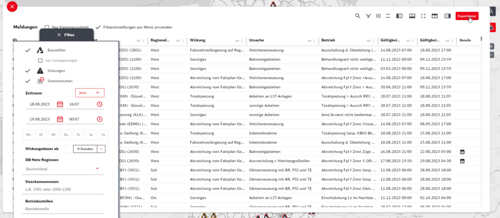 Abbildung 5.6‑5: Baustellenmeldungen exportieren