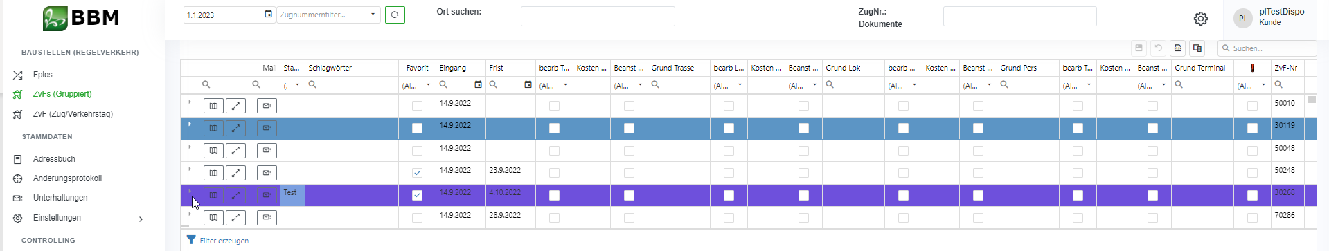 Abbildung 4.1-7: Farbliche Markierung in der Tabellenübersicht