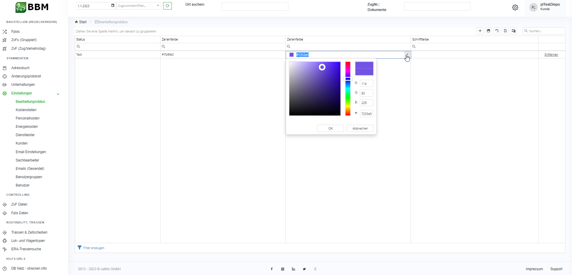 Abbildung 4.1-6: Farbe auswählen für Bearbeitungsstatus